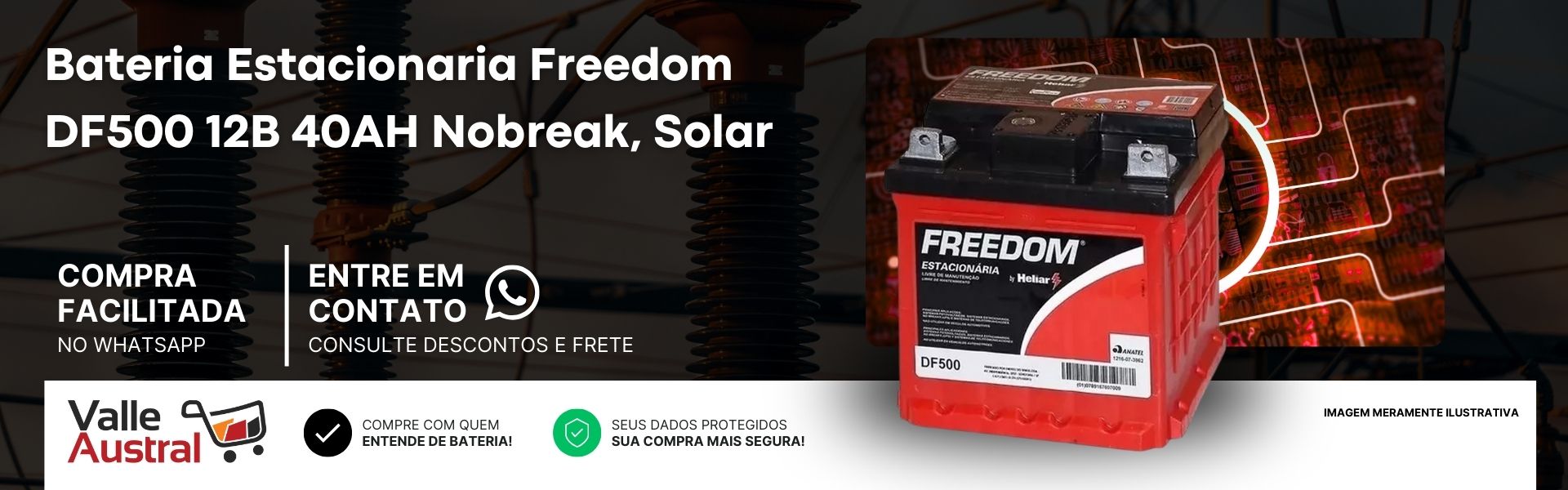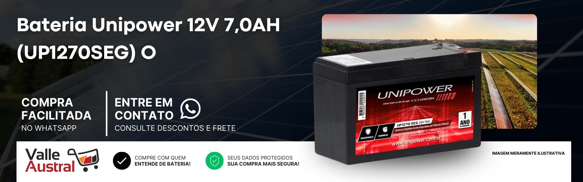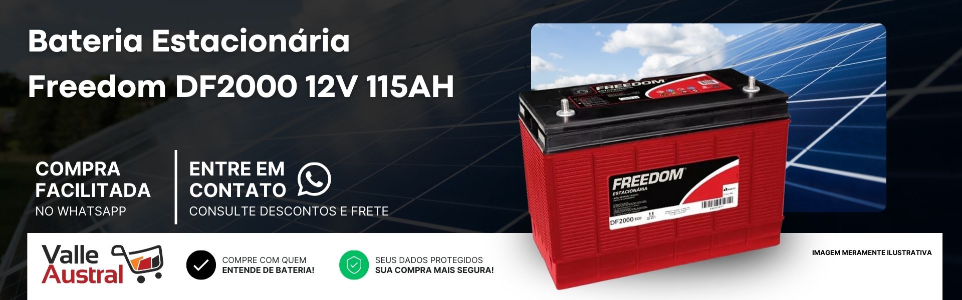 NAVEGUE POR NOSSAS CATEGORIAS Baterias Pneus Alimentos Baterias Pneus Alimentos Destaques Farinha Profissional Badotti uso geral... Por : R$ 81,00 Adicionar ao Carrinho Comprar Bateria Estacionária Freedom Df1500 12... Por : R$ 798,71 Adicionar ao Carrinho Comprar Bateria Estacionaria Freedom Df4001 12... De : R$ 1.928,00 Por : R$ 1.928,00 Adicionar ao Carrinho Comprar BATERIA UNIPOWER 12V 5,0AH (UP1250) O Por : R$ 73,10 Adicionar ao Carrinho Comprar Bateria Estacionária Freedom Df2500 12... Por : R$ 1.426,27 Adicionar ao Carrinho Comprar COMFORSER - PNEU 31x10.50R15LT 109S TL... Por : R$ 804,75 Adicionar ao Carrinho Comprar BATERIA UNIPOWER 12V 18AH M5 (UP12180) O Por : R$ 270,73 Adicionar ao Carrinho Comprar Bateria Estacionaria Freedom Df700 12v... Por : R$ 474,16 Adicionar ao Carrinho Comprar Sobre a Valle Austral × Adicionar aos Favoritos Para adicionar aos favoritos é necessário estar logado. Efetuar Login